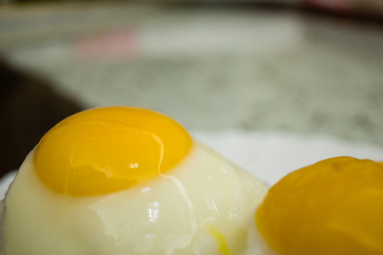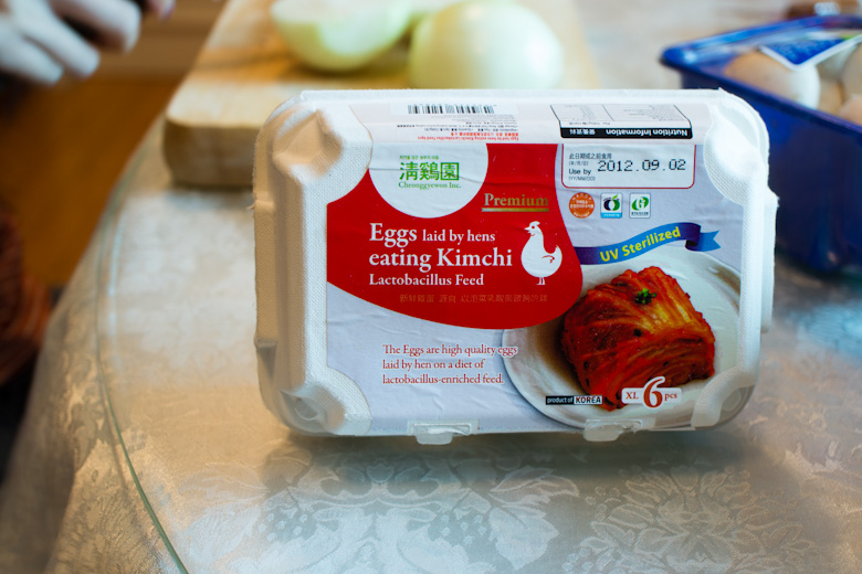 The eggs are fried last so that they’re still hot and fresh! Eugene found these “eggs laid by kimchi eating hens” at Jusco so we thought we’d try them out since they’re “healthier.” It was hard to tell if they tasted any different than normal eggs though since everything became one delicious hot mess.