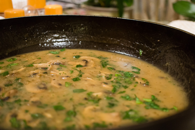 Stir in the parsley and add pepper to taste. Set the gravy aside until ready to serve.