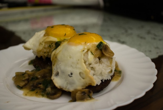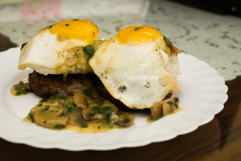 I started having mad cravings for good Hawaiian comfort food. There aren’t any places that I know of in Hong Kong that do Hawaiian food. The only way of killing this craving was to get into the kitchen. I’ve totally been slacking in that department lately so I thought it was time for some DIY Cray !!! I attempted replicating everybody’s Hawaiian favorite, Loco Moco. Loco Moco is essentially hamburger patties on rice topped with fried eggs and smothered in gravy. Mmmm one of my favs! I thought this would be easy to make and would definitely fill my Hawaiian food void. Plus, I found a recipe for The Meatball Shop’s mushroom gravy! That mushroom gravy is crack. SO GOOD! Click here for more recipes from The Meatball Shop.